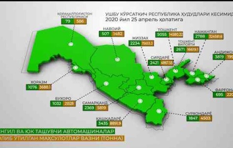 Карантинда транспорт воситаларининг ҳаракатланиши ва юк ташиш динамикаси 25.04.2020 й